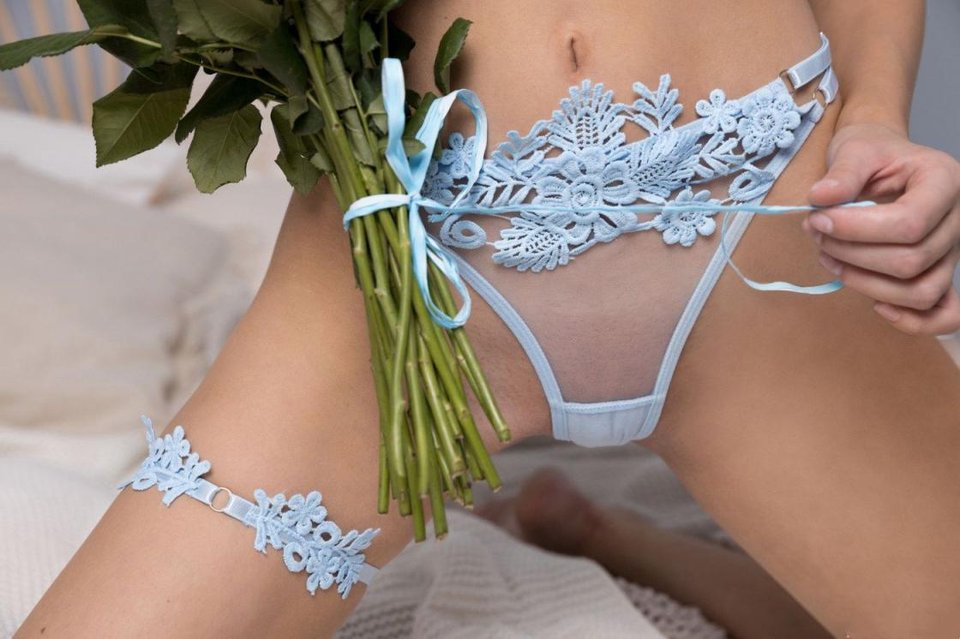 一位美丽的金发少女身着蓝色透视蕾丝内衣,展现出她性感纤细的身材[32P]